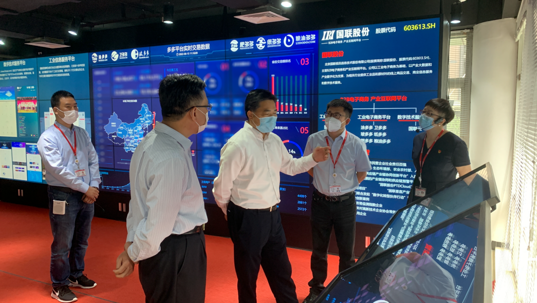 盛秋平副部長(cháng)參觀了(le)國(guó)聯股份數(shù)據中心和(hé)國(guó)聯π雲數(shù)字展廳,錢(qián)曉鈞攜公司高(gāo)管就(jiù)國(guó)聯股份的(de)産業(yè)互聯網平台模式,提升産業(yè)鏈數(shù)字化(huà)水(shuǐ)$平和(hé)供應鏈價值創新,支持保供保暢、複工(gōng)複産等方面工(gōng)作(zuò)進行(xíng)了(le)詳細彙報(bào)。