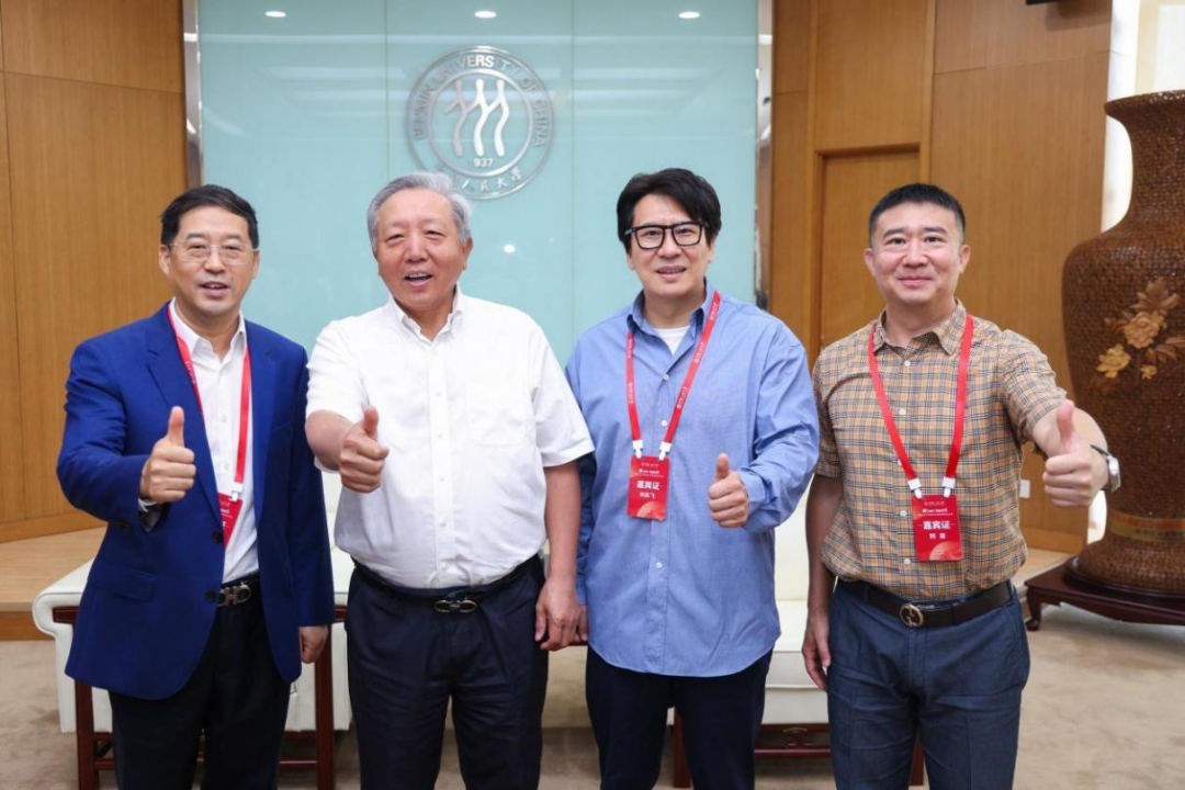 (左起依次為(wèi):利雅德(股票(piào)代碼300296)董事(shì)長(cháng)李軍,中國(guó)人(rén)民(mín)大(dà)學原副校(xiào)長(cháng')、校(xiào)友(yǒu)會(huì)副會(huì)長(cháng)吳曉求,源峰基金(jīn)董事(shì)長(cháng)劉樂(yuè)飛(fēi),國(guó)聯股份董事(shì)長(cháng)劉泉)