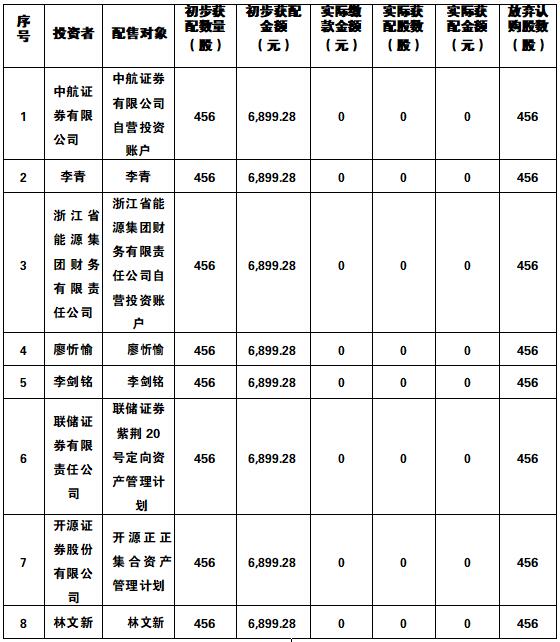3、 網下(xià)投資者放(fàng)棄認購(gòu)數(shù)量:7,754 股