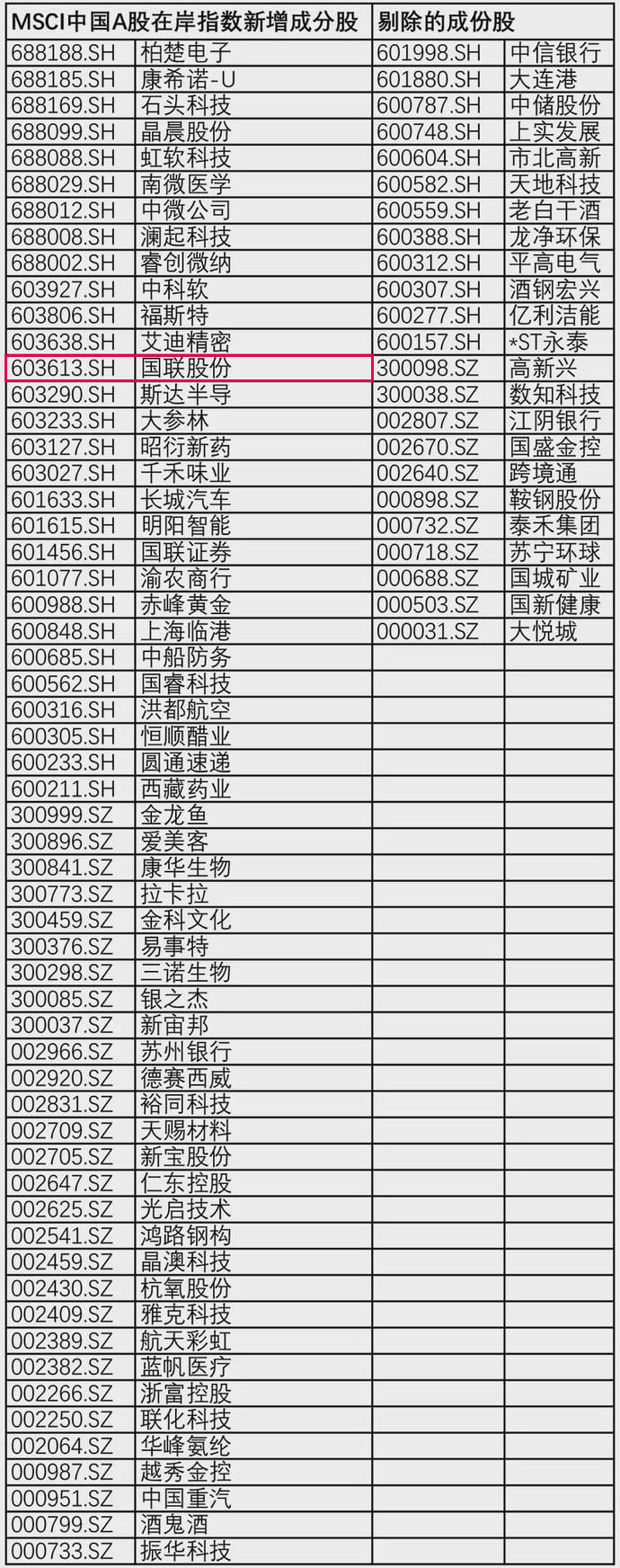 國(guó)聯股份(603613.SH)入選MSCI中國(guó)A股在岸指數(shù)成分(fēn)股