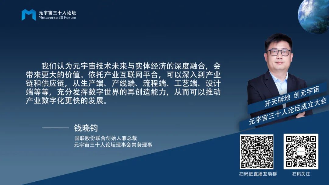 國(guó)聯股份錢(qián)曉鈞受邀出席第二屆全球元宇宙大(dà)會(huì)并發表“産業(yè)互聯網和(hé)元宇宙”主旨演講