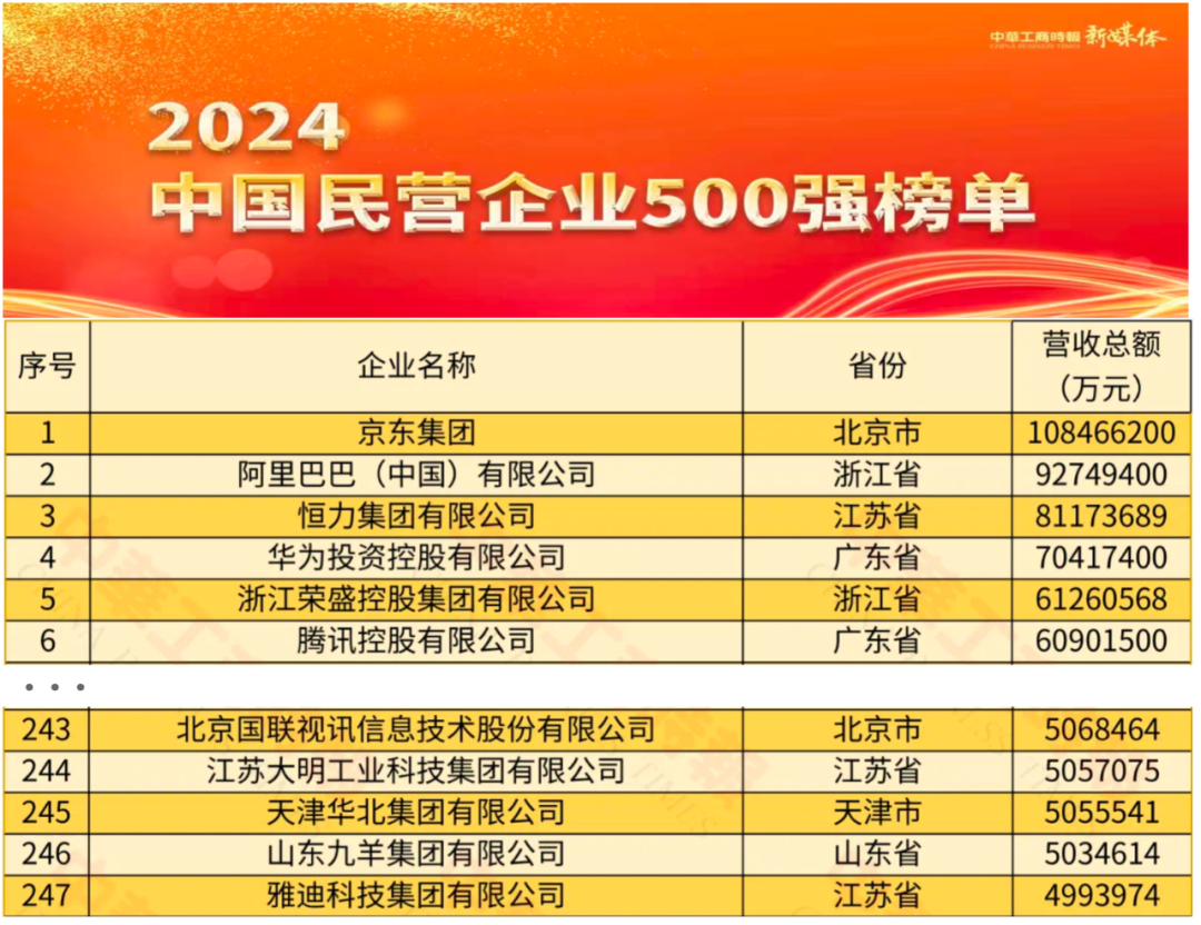 近(jìn)日(rì),全國(guó)工(gōng)商聯權威發布“2024中國(guó)民(mín)營企業(yè)500強榜單”和(hé)“2024中國(guó)服務業(yè)民(mín)營企>業(yè)100強榜單”。