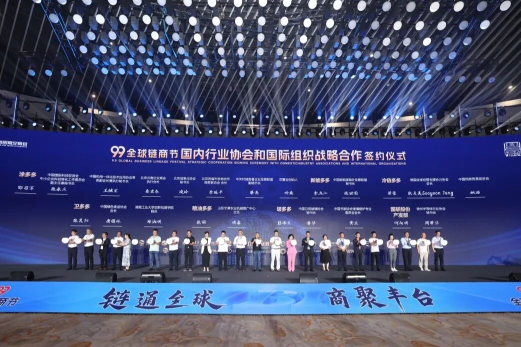 9月(yuè)9日(rì),由北(běi)京市(shì)豐台區(qū)商務局、中關村(cūn)豐台園管委會(huì)、國(guó)聯股份聯合主辦的(de)第十屆99全球鏈商節開(kāi)幕式暨豐台對(duì)外(wài)開(kāi)放(fàng)發展推介會(huì)在北(běi)京園博園隆重召開(kāi),來(lái)自(zì)于20多(duō)個(gè)國(guó)家(jiā)和(hé)地(dì)區(qū)的(de)1500餘家(jiā)境內(nèi)外(wài)産業(yè)鏈、供應鏈重點企業(yè),商務組織,政府、協會(huì)、使領館 共1800餘名代表齊聚一(yī)堂,共襄盛舉。在所有(yǒu)與會(huì)嘉賓的(de)共同見(jiàn)證下(xi"à),多(duō)多(duō)平台第十屆99全球鏈商節線上(shàng)集采正式啓動。